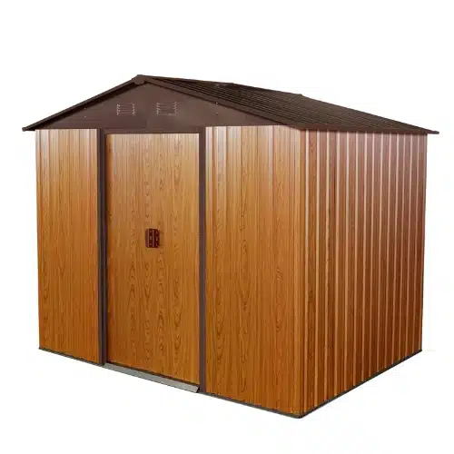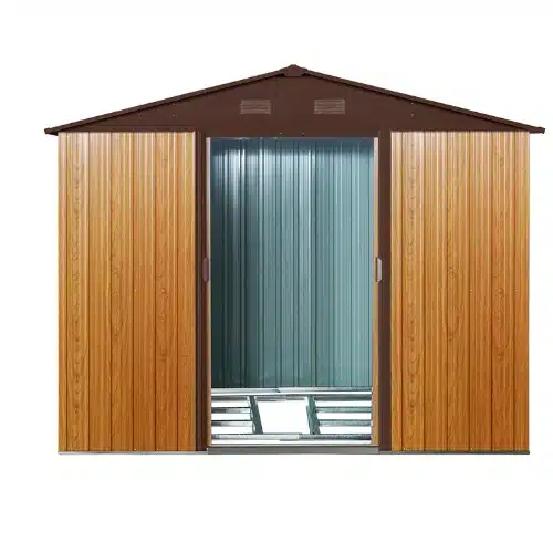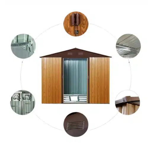 מסגרת פלדה מגלוונת בעובי 0.6 מ"מ לוחות חיפוי מגלוונים בעובי 0.25 מ"מ עם הגנה מקרני UV דלת הזזה כפולה גוון: חום עץ