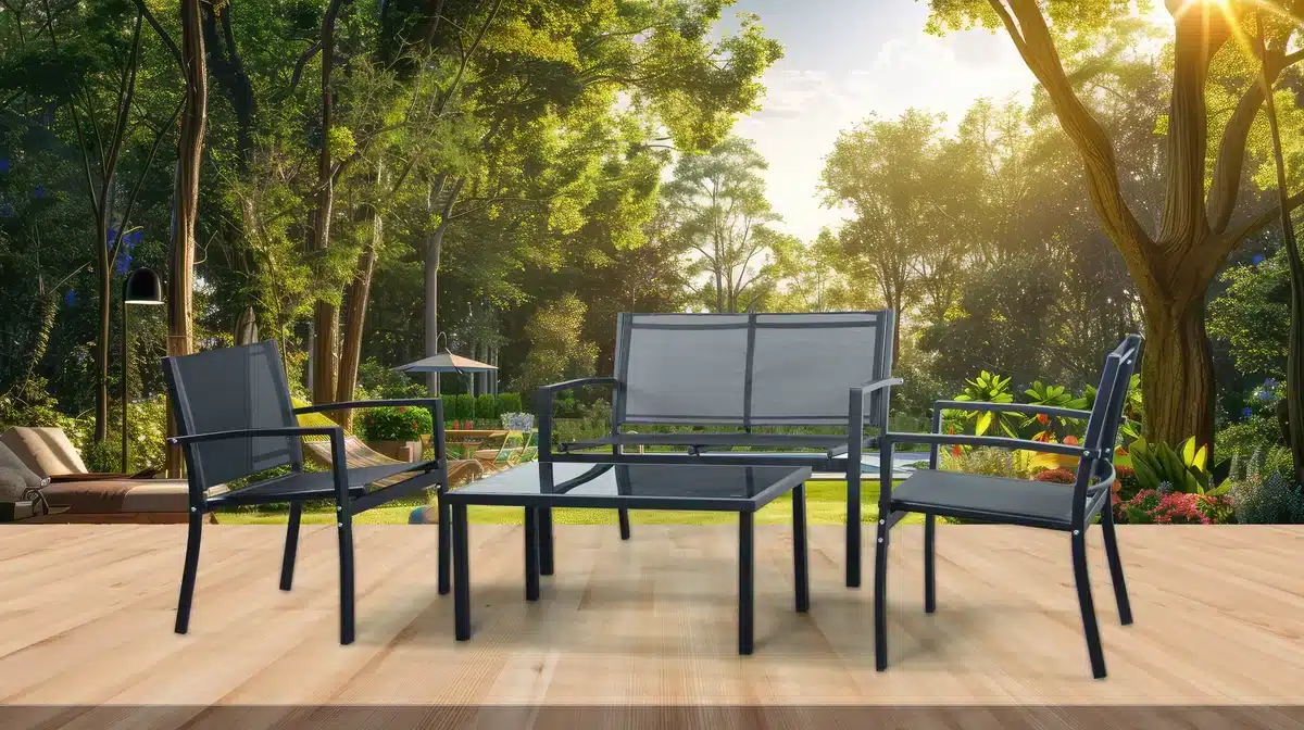 מערכת ישיבה לגינה דגם מונקו סט ריהוט גן עם מסגרת פלדה ורשת – 4 חלקים הסט המושלם לכל גינה, מרפסת או פטיו, המשלב עיצוב מודרני ונוחות מקסימלית.
