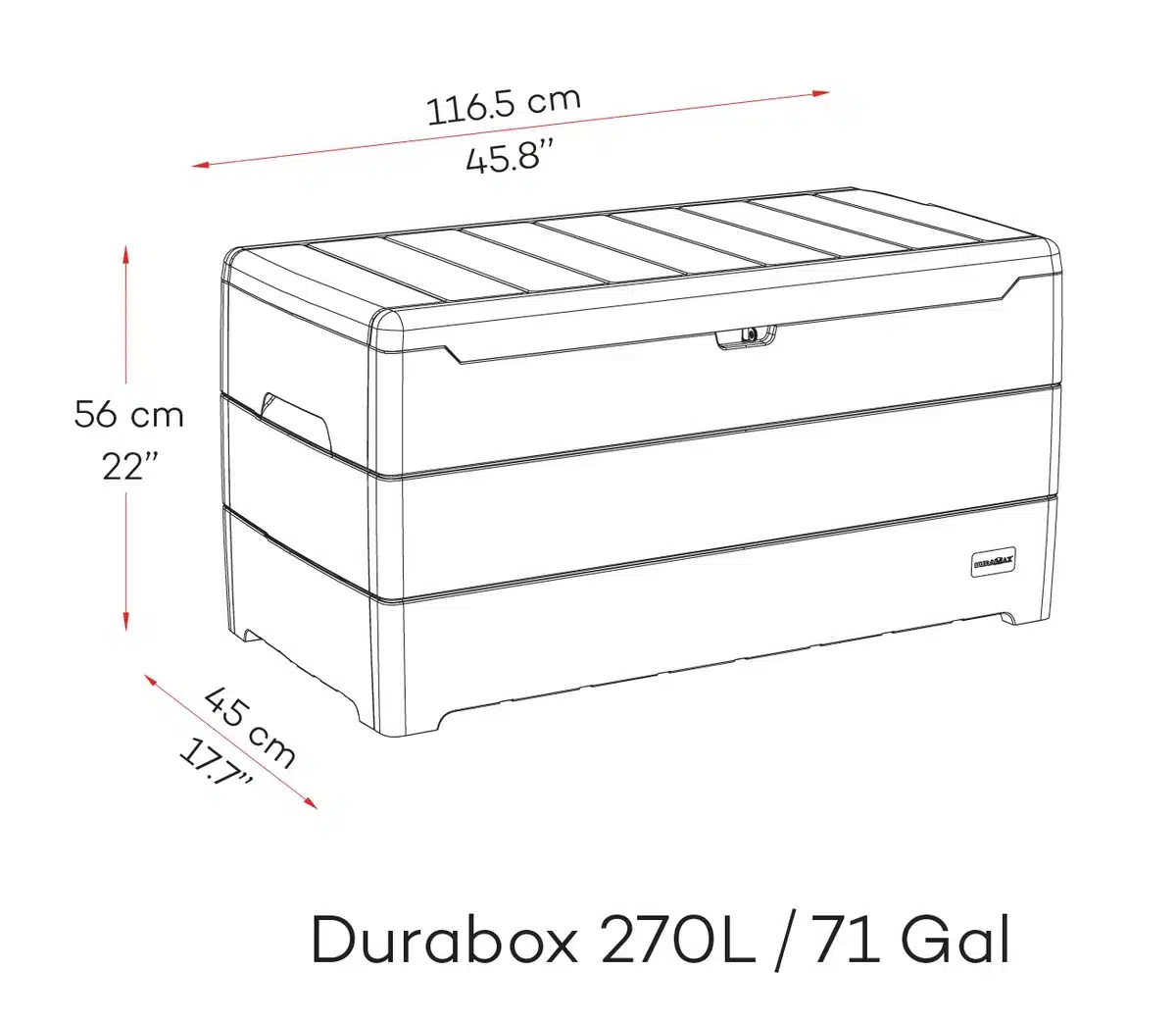 ארגז אחסון 270 ליטר, עשויה משרף פלסטי יצוק איכותי וחזק במיוחד. צבע אפור פחם.
