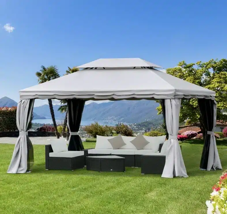 גזיבו איכותי כולל ווילונות ורשתות גזיבו איכותי עשוי מאלומיניום שיחזיק שנים רבות. פתרון מהיר, ויוקרתי המתאים לכל גינה.