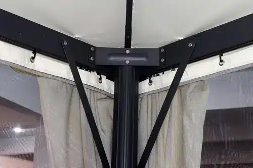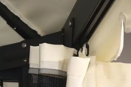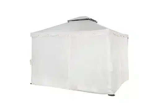 יתרונות המוצר: – עמודי אלומיניום חזקים – בד פוליאסטר בגוון שמנת יוקרתית – מתאים להתקנה עצמית, ישנה אפשרות לשירותי התקנה – פוליאסטר עמיד למים – מתאים לקיץ – פתח עליון לשחרור אוויר חם כלוא (כולל רשתות) – בעל הגנת UV – מחיר כולל את דפנות הגזיבו ורשתות – סגירה פתיחה נוחה ומהירה של רשתות והדפנות של הגזיבו – תיתכן חדירת מים בצדדים או מהגג בסופה או בגשם חזק.