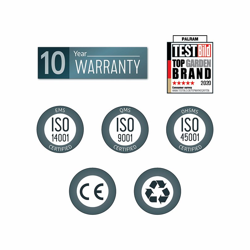 אחריות המוצר מותנת בעיגון המוצר למשטח מפולס העשוי בטון / מרצפות / דק במעמד ההתקנה, בהתאם למפורט בהוראות ההרכבה.