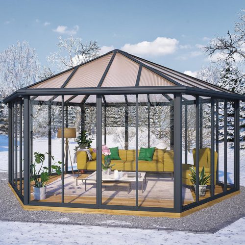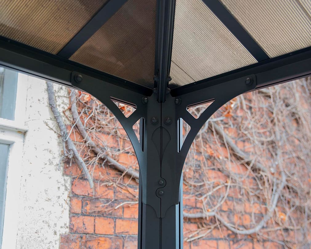 הגזיבו עשוי אלומיניום ופוליקרבונט קשיח ומתאים למגוון שימושים בכל עונות השנה ללא צורך בתחזוקה.