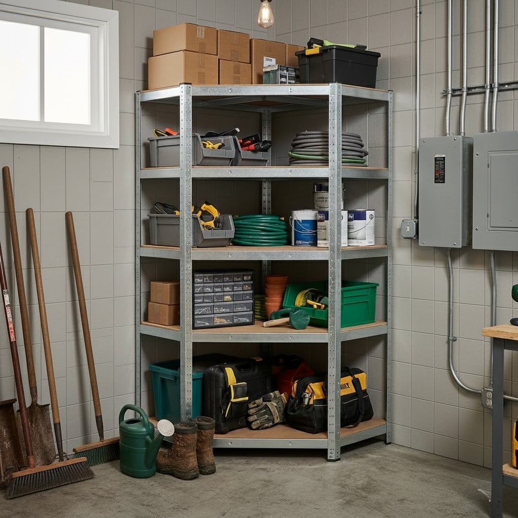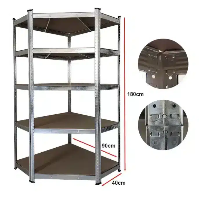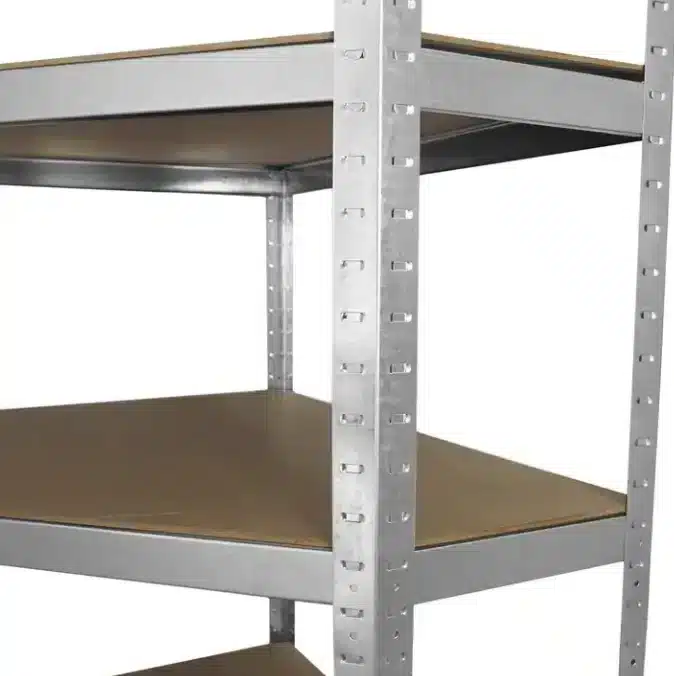 מדפי מתכת למחסן ממתכת מגולוונת – אינו מחליד או מתקלף ניתן לשנות את המרווח בין מדף למדף כולל רגליות מפסלטיק