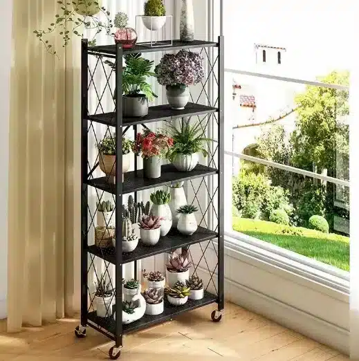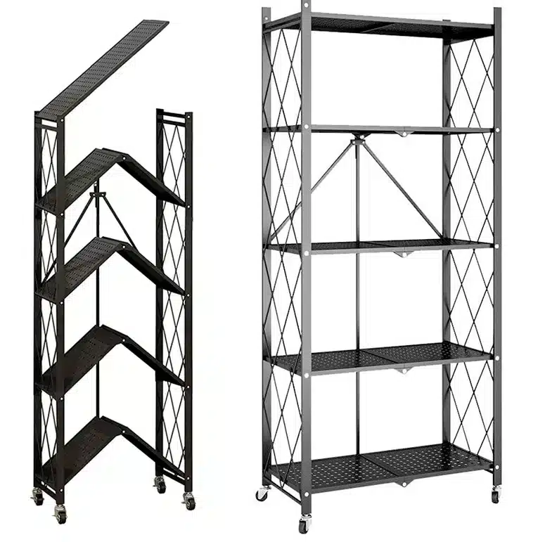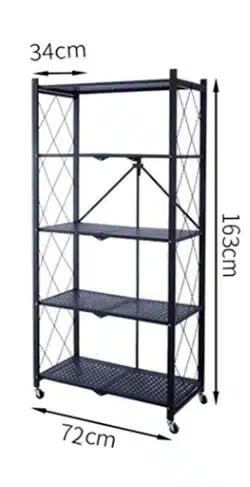 – כוננית בעלת 5 קומות של מדפים – מגיעה עם 4 גלגלים ואפשרות לנעילת 2 גלגלים לקיבוע – המדפים בעלי נקודות אוורור למניעת עובש – מגיע מורכבת -רק להוציא מהקרטון, ולהשתמש – קיפול ופתיחה מהירים – פחות מדקה! – גלגלים מסתובבים 360 מעלות – עד 50 ק”ג למדף ( בפיזור, לא בנקודה אחת)