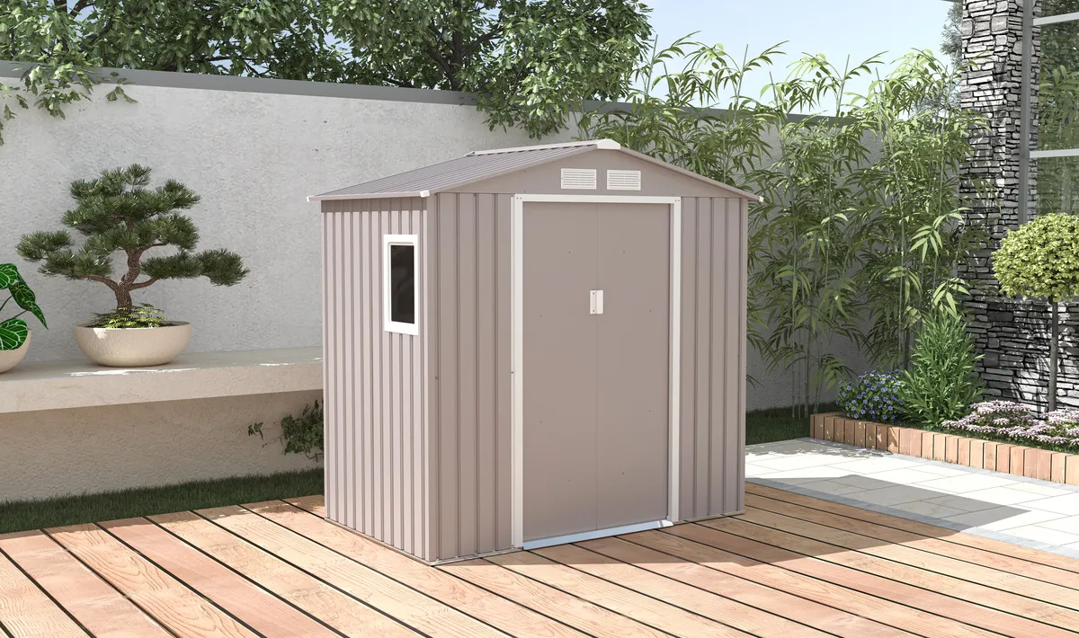 מחסן מתכת מבית EverGreen. המחסן מהווה פתרון אחסון פשוט וקל, בהתאם לשטח הגינה או החצר בגינתכם. מחסן פרמיום הכולל דלתות מחוזקות במיוחד!