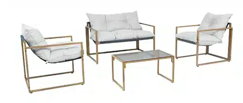 המערכת מעוצבת ונוחה. המערכת כוללת סט ריפודים נשלף ורחיץ צבע הכריות: לבן כריות פוליאסטר 180 גרם תחתיות פינת הישיבה עשויות בד טקסטיל צבע שילדה: עץ