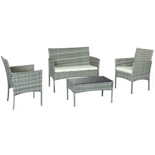 פינת ישיבה מפנקת בשילוב ראטן בגוון אפור בהיר הכוללת שולחן קפה. פינת ישיבה מפנקת בעיצוב מודרני משילדת ברזל בשילוב ראטן למראה יוקרתי. הפינת ישיבה כוללת ספה דו מושבית + שתי כורסאות יחיד + שולחן אירוח מלבני וכריות מרופדות.