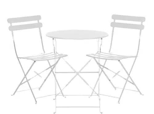 – פינת ישיבה עשויה 100% פלדה צבועה בתנור – צינורות פלדה עמידים המספקים תמיכה ויציבות – גוון הכיסאות והשולחן לבן – נוח וקומפקטי לישיבה – מתקפל ונוח לאחסון – קל לניקוי