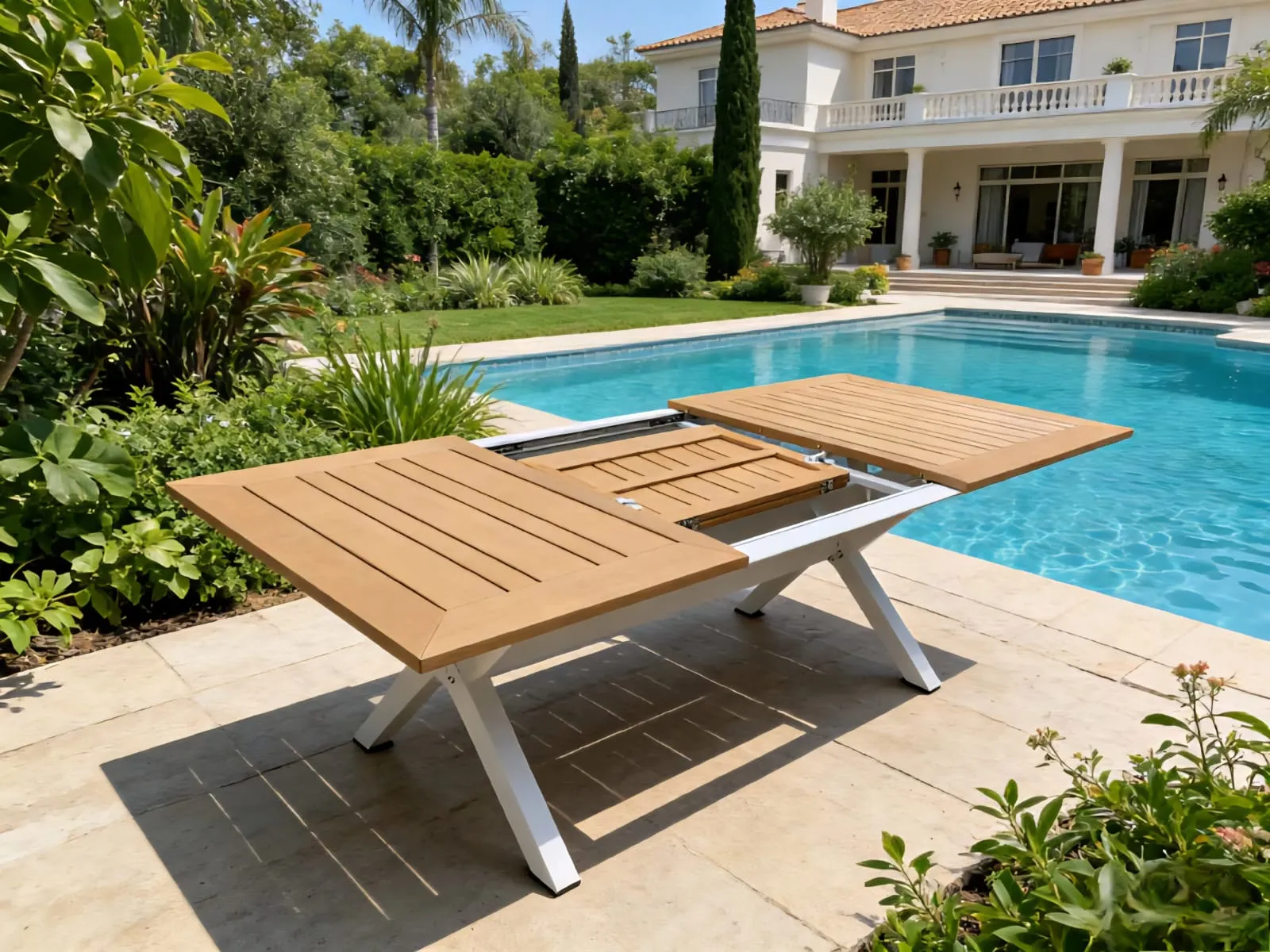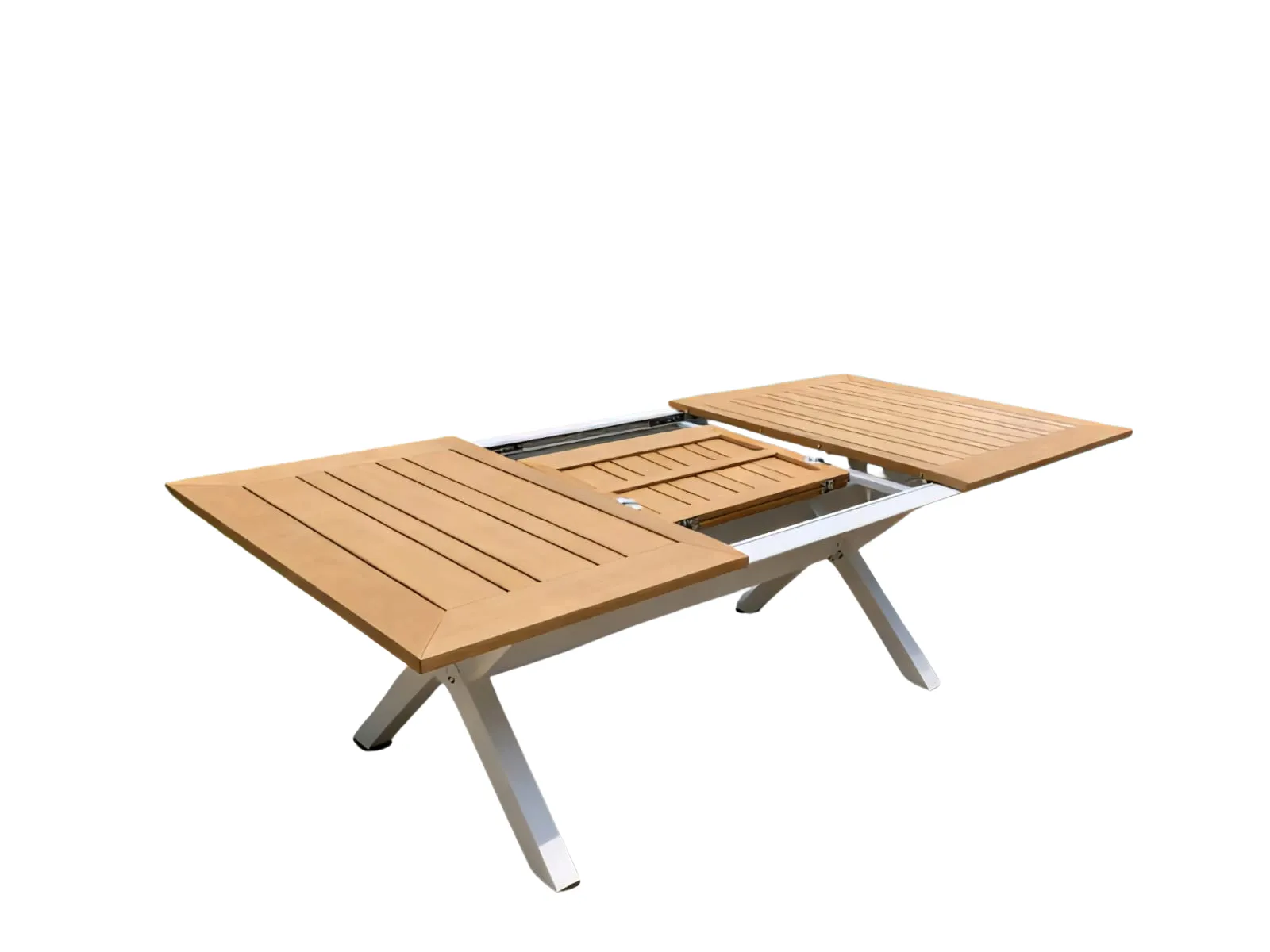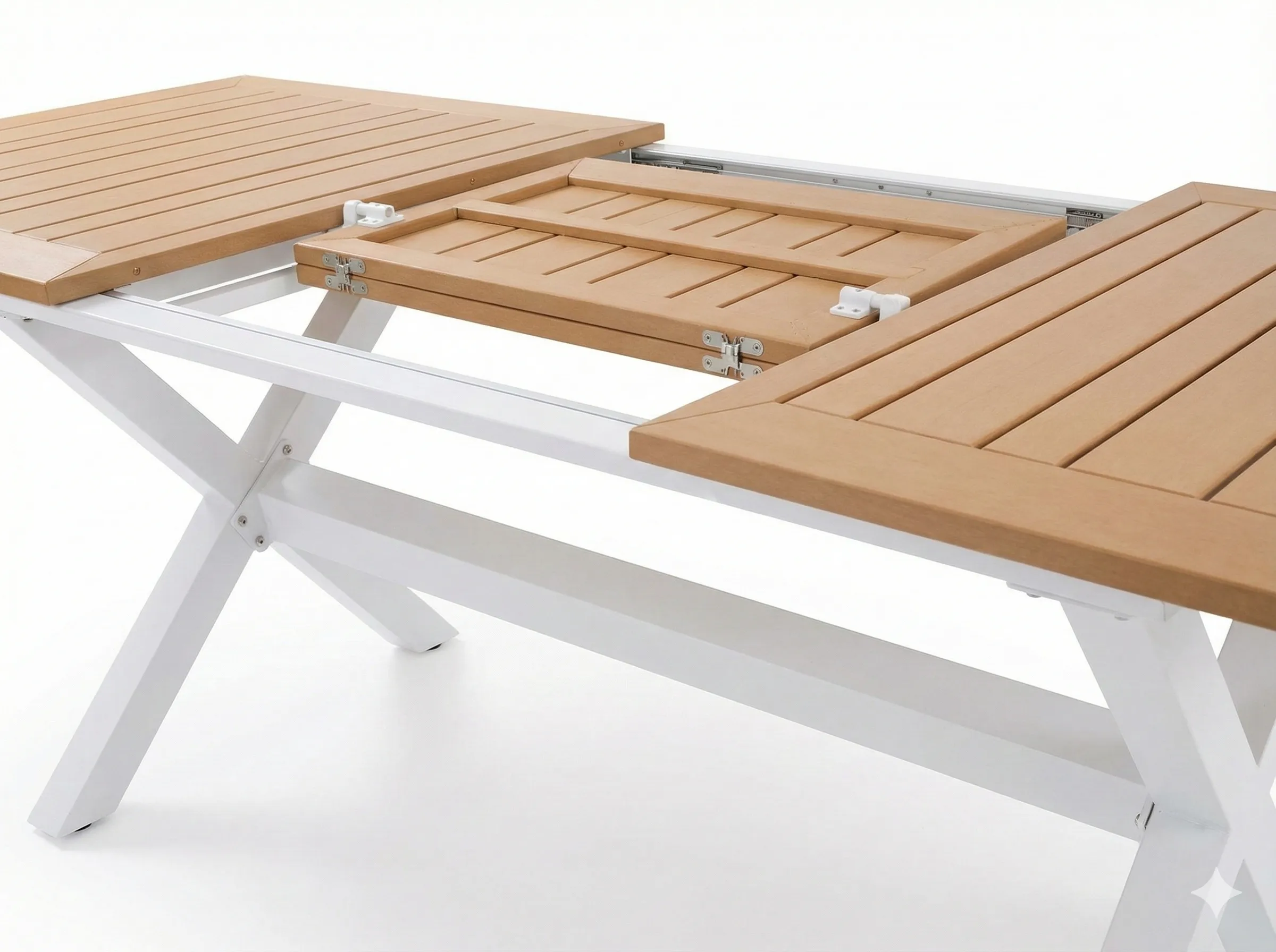 מנגנון פתיחה השולחן נפתח באמצעות מנגנון מסילות פנימי. יחידת ההארכה (גם היא מלוחות Poly-Wood) מאוחסנת בתוך השולחן ונשלפת בקלות בעת הצורך.