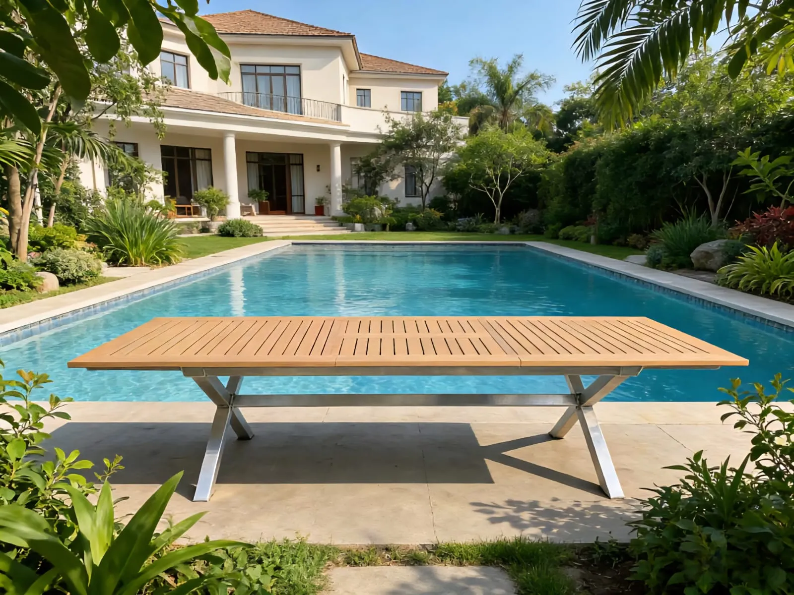 שולחן אירוח המשלב שלדת אלומיניום מחוזקת עם משטח עליון עשוי Poly-Wood (לוחות פולימר דמוי עץ). מעניק מראה עץ טבעי וחם ללא צורך בשימון או חידוש. עמיד לתנאי חוץ.