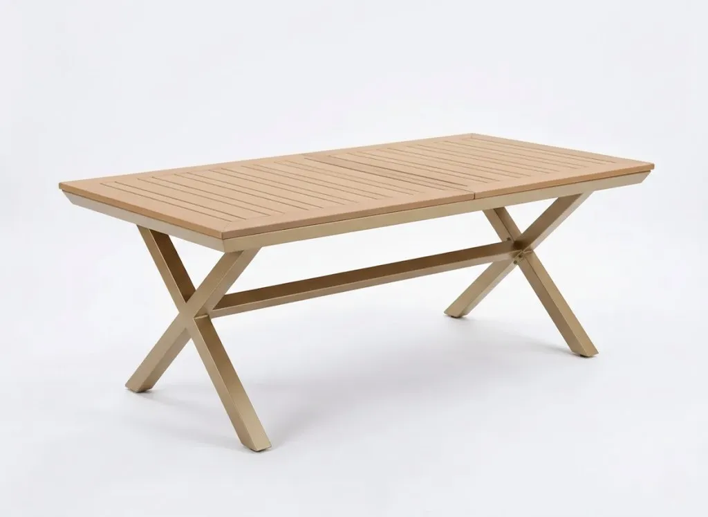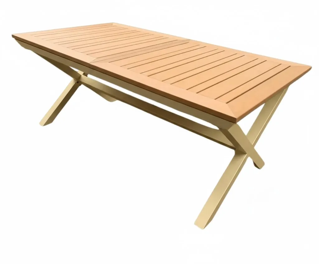שולחן אלומיניום נפתח 200x300 דגם טורינו רגלי X שמפניה