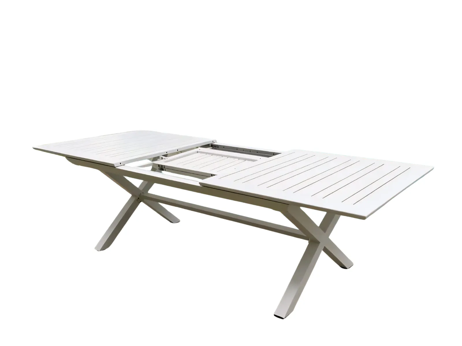 שולחן אירוח מודרני בעיצוב רגלי X. משלב מראה אלגנטי עם פרקטיקה מושלמת: מבנה הרגליים מאפשר ישיבה נוחה בכל הפינות ללא הפרעה לברכיים. עשוי 100% אלומיניום מחוזק ועמיד בכל מזג אוויר. לפרטים נוספים↓