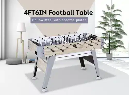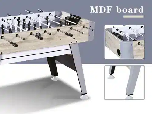 מגרש משחק: 5 מ”מ MDF מוטות משחק: קוטר 13 מ”מ, פלדה חלולה מצופה כרום יציב וחזק, כולל אפשרות פילוס ברגלי השולחן