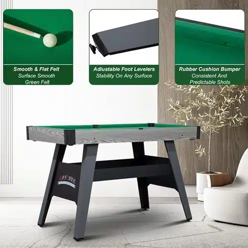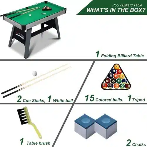 שולחן משחק לכל המשפחה, פתרון מושלם לילדים ומתבגרים. כולל כל האביזרים הנלווים שני מקלות סנוקר סט כדורים מלא מברשת שולחן, משולש לסידור הכדורים, וקוביות גיר למקלות. שולחן יציב ונוח למשחק עשוי מחומרים: MDF, קטיפה, PVC.